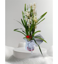 Saksıda Orkide (Çift Dallı Beyaz)