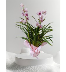 Saksıda Pembe Orkide (Çift Dallı)